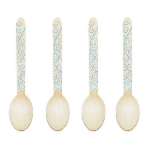 Dress My Cupcake 4.25-Inch Natural Wood Dessert Table Spoon, Baby Blue Filigree, Case of 50