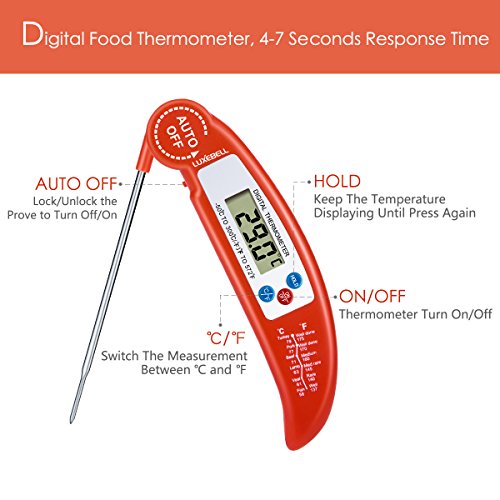 Digital Instant Read Thermometer,Luxebell Indoor Kitchen Meat Oil Cooking BBQ Grill Food Candy Water Oven Thermometer Updated Version