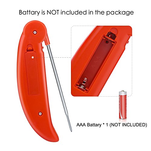 - Compact Foldable Probe: The stainless long probe can be fold down and easily stored in your pocket, apron, and drawer. Before withdrawing probe, push "HOLD". It will hold the temperature reading until pressed again.