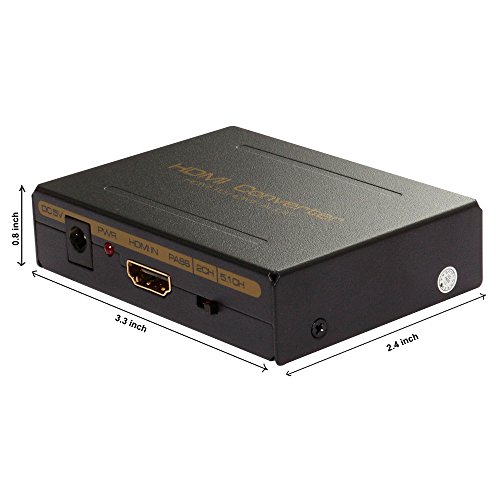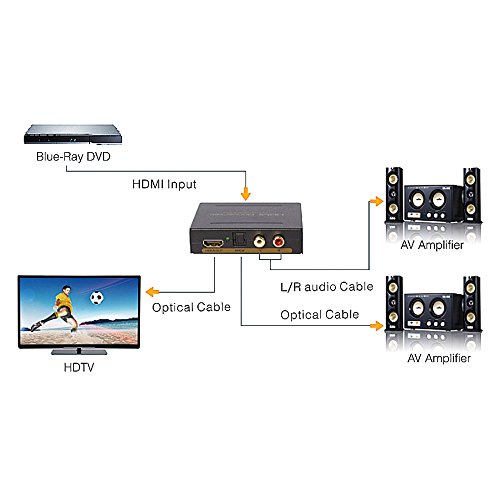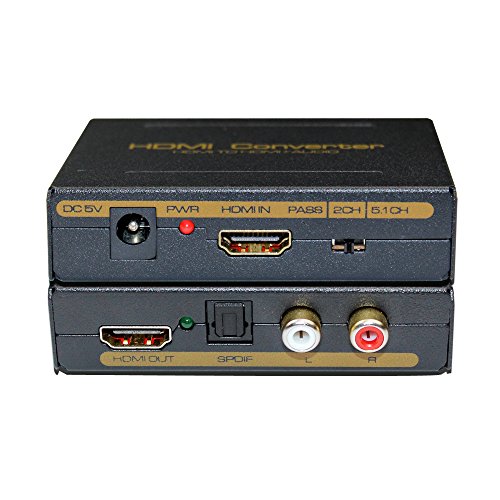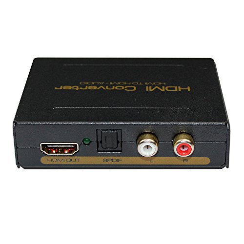 Studio : Lomalson Publisher : Lomalson Binding : Electronics Product Description Description: Lomalson HDMI Converter allows the HD Source connected to single HD Display and adds extra one L R and SPDIF audio out port. Our devices offer solutions for noise, space and security concerns, data center control, information distribution, conference room presentation, school and corporate training environments. Specifications: One HDMI input converted to one HDMI Audio (SPDIF R/L)output Output audio support: SPDIF R/L analog Audio Output Input Resolution: up to 1080P(50/60Hz) HDMI to achieve the synchronization of audio signal separation. There are PASS / 2.0CH / 5.1CH three kinds of audio mode options LED indication: when source or sink is working, LED relative to is light . No loss of quality Installs in minutes Need DC5V/1A power supply ( included in the pakage ) How to Connect ? 1.To use one HDMI cable to connect the HD Source with the input HDMI port. 2.To connect the converter HDMI output port with the HD Display. 3.To use one audio cable to connect the converter R/L port with the audio equipment. 4.To use the optical cable to connect the SPDIF port with the audio equipment. 5.To connect the converter with 5V DC power adaptor.