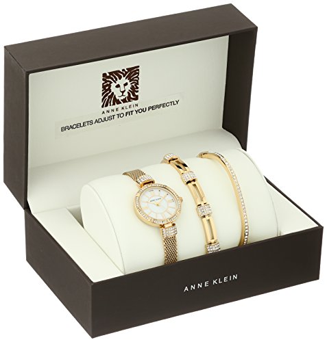 For a dazzling look every time, just add this crystal-infused watch and bracelet set from Anne Klein. It includes two matching bracelets along with the elegant watch, each piece featuring a breathtaking array of Swarovski crystal accents. They're perfect for mixing and matching, so you can design a tailored look for every occasion with any one or two bracelets, or even the full set as a stacked-wrist statement!Feature