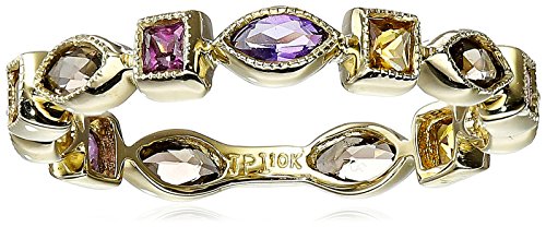 -. Feature : Sparkling ring in 10k yellow gold featuring geometric-shaped smoky quartz, amethyst, citrine, and rhodolite gemstones / Gemstones may have been treated to improve their appearance or durability and may require special care. / The natural properties and composition of mined gemstones define the unique beauty of each piece. The image may show slight differences to the actual stone in color and texture. / Imported