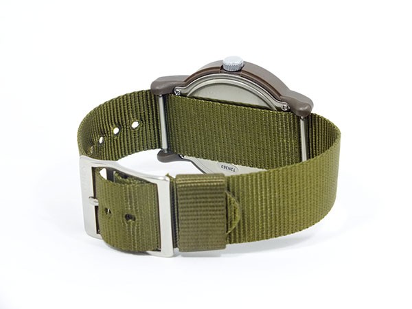 仕様クオーツ、5気圧防水、インディグロナイトライト、日付カレンダー、ブラック(文字盤カラー)、カーキ(ベルトカラー)