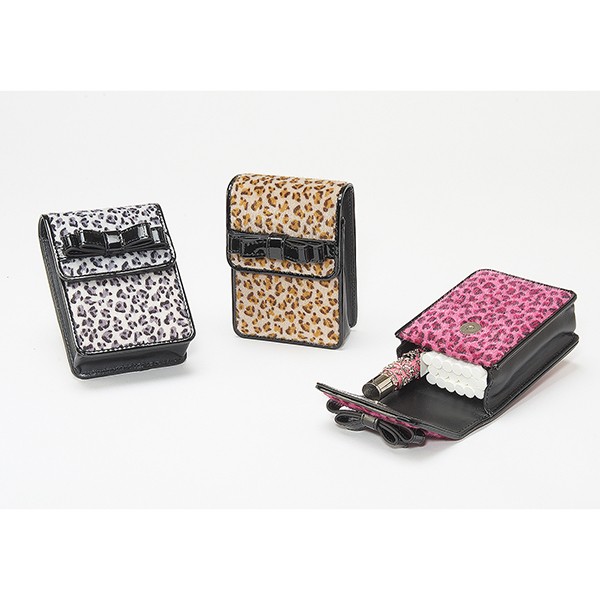 坪田パール TSUBOTA PEARL レオパード リボンポーチ タバコケース 喫煙具 レディース ピンク 100mmの20本入りのたばこ箱と細身のライターなどが入る女性向けのかわいいシガレットケースです。