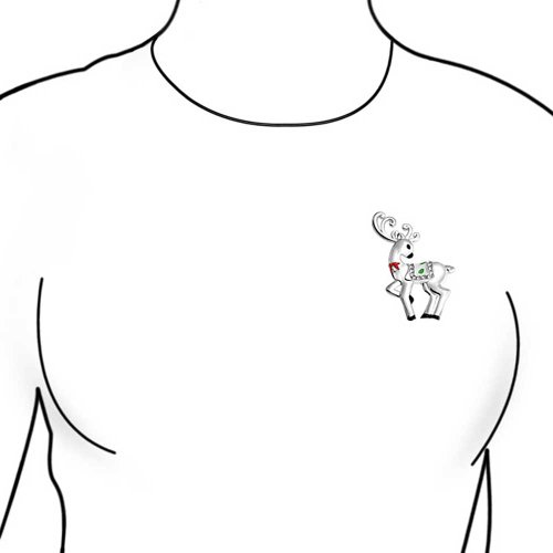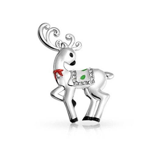 -. Title : Bling Jewelry Enamel Christmas Reindeer Crystal Pin Brooch Silver Plated