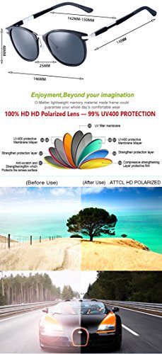 If you have any problems in the future, Please contact us, We will provide you the best service! ATTCL Hot Retro Metal Frame Driving Polarized Sunglasses For Men Women, User for Daily life, Party, Driving Sunglasses and all Active Outdoor lifestyles! How Do Polarized Lenses Work? Light reflected from surfaces such as a flat road or smooth water generally is horizontally polarized. This means that, instead of light being scattered in all directions in more usual ways, reflected light generally travels in a more horizontally oriented direction. This creates an annoying and sometimes dangerous intensity of light that we experience as glare.