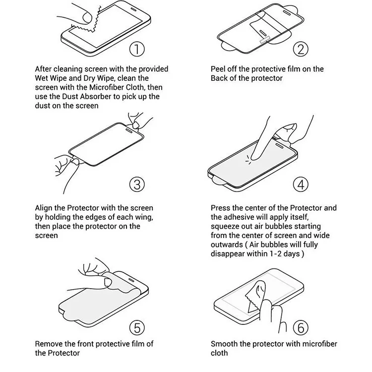1 cleaning cloth+1 moist wipes +1 OPP BAG +1 tempered glass screen protector.