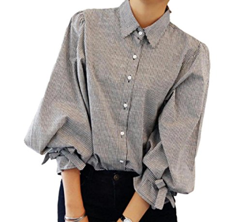 -. Feature : 袖口がゆったりとしたバルーンスリーブのブラウス。 / シンプルだけどストライプ柄がオシャレです。 / 大きめの作りで体型を気にせず着用できて動きやすい。 / 清楚で上品な印象を与える大人のファッションです。 / サイズは下記の説明文に記載していますのでご参照ください。
