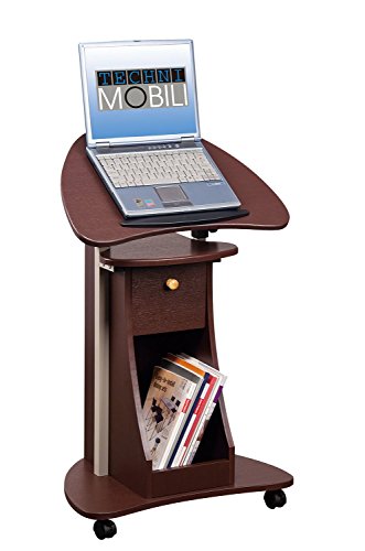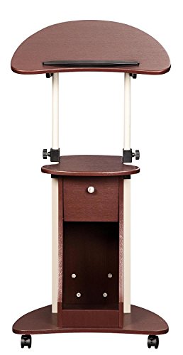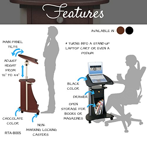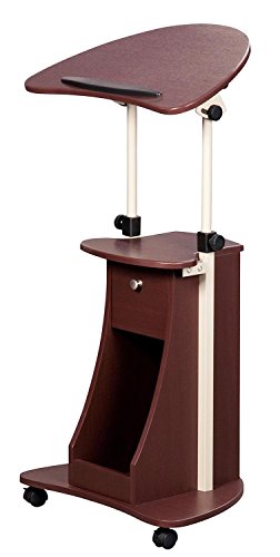 Height Adjustable Laptop Cart With Swivel Top And Storage. Color: Chocolate