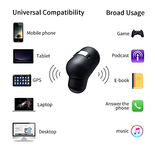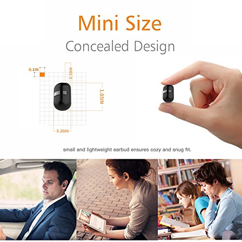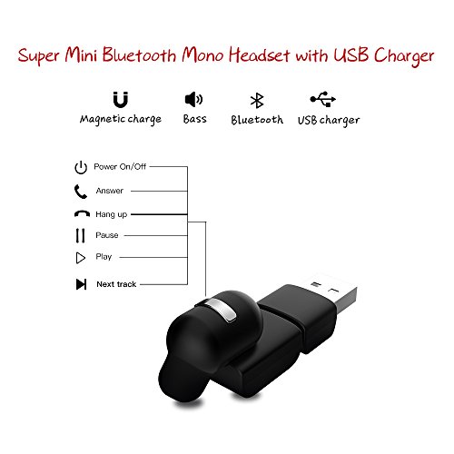 -. Feature : Mini ultra small design, comfortable, completely hidden in the headset, suitable for sports, leisure and other scenes. / High quality lithium ion batteries allow you to listen to audio in the 50-60% volume of about 7 hours, 6-8 hours of talk time, and 4 hours of full amount. / Bluetooth 4.1 EDR technology compatible with all Bluetooth enabled devices. Connect to your smartphone or tablet immediately, from 33 feet away. / Multi point connection, you can connect two smart phones. / Magnetic inductive charging,Never Have to fiddle with cords,Easy to carry,do not worry about charging.