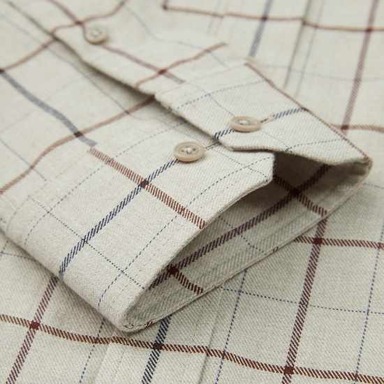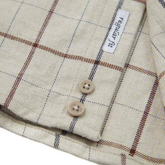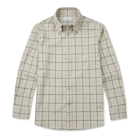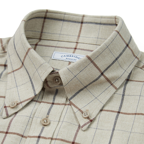 - 따뜻한 베이지 컬러에 체크 패턴을 적용한 남성 체크 셔츠.