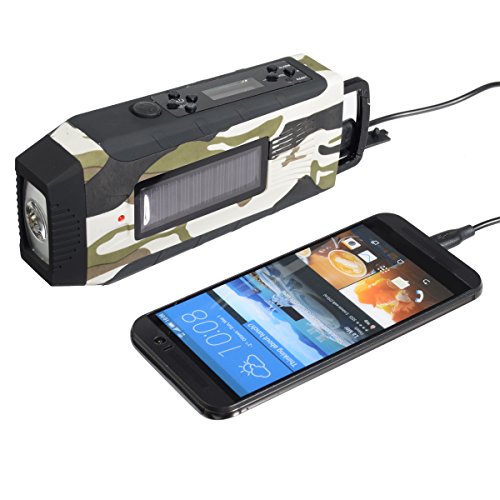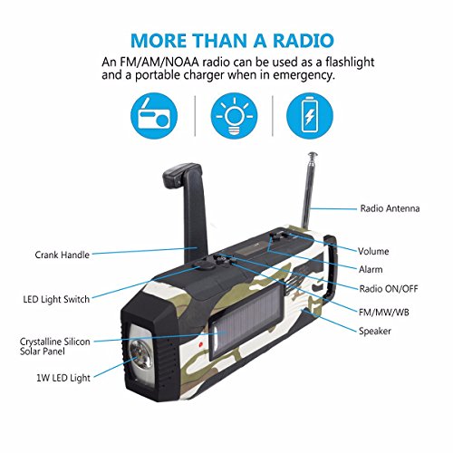 ●YOU CAN POWER UP IN ANY SITUATION: Want to be the most reliable one in a pinch? Other radios, phones and flashlights go dark. But you can power up effortlessly through plug-in, solar power, or crank—1 minute of easy cranking and you have a full 20 minutes of power!