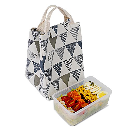 HOMESPON Reusable Printed Lunch Bag, Non-Toxic Eco-Friendly Canvas Fabric Insulated Waterproof Aluminum Foil, Lunch Box Tote Handbag for Women, Students Bento Cooler Bag (Triangle Pattern-Grey)