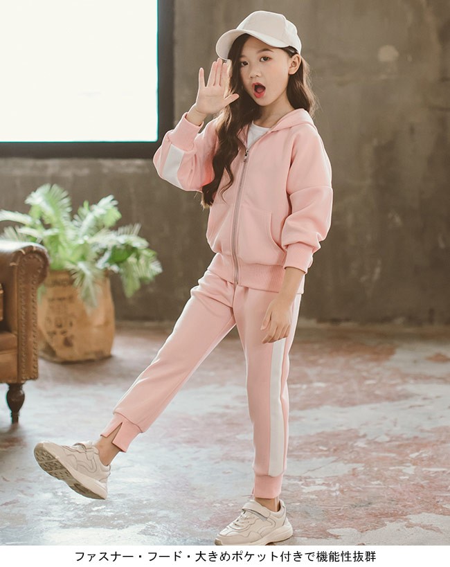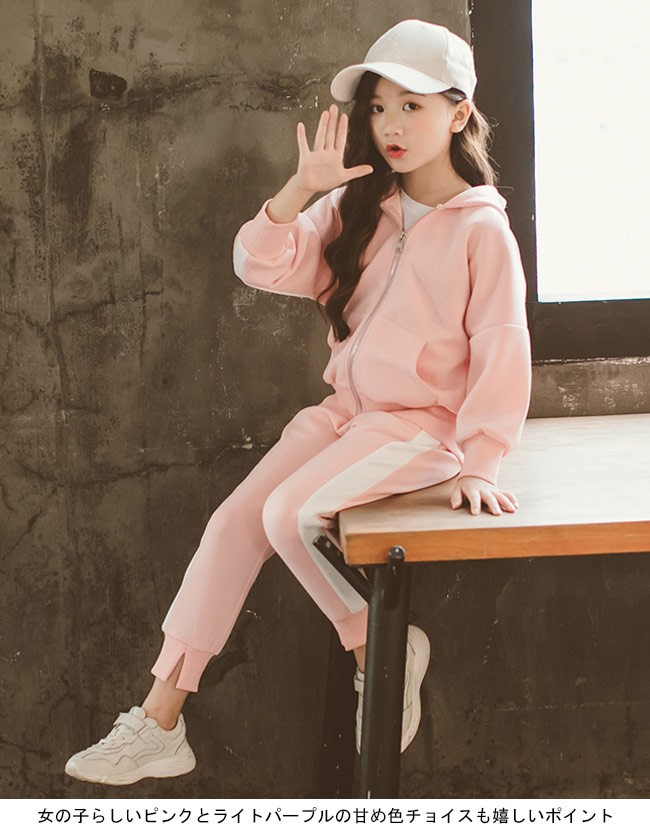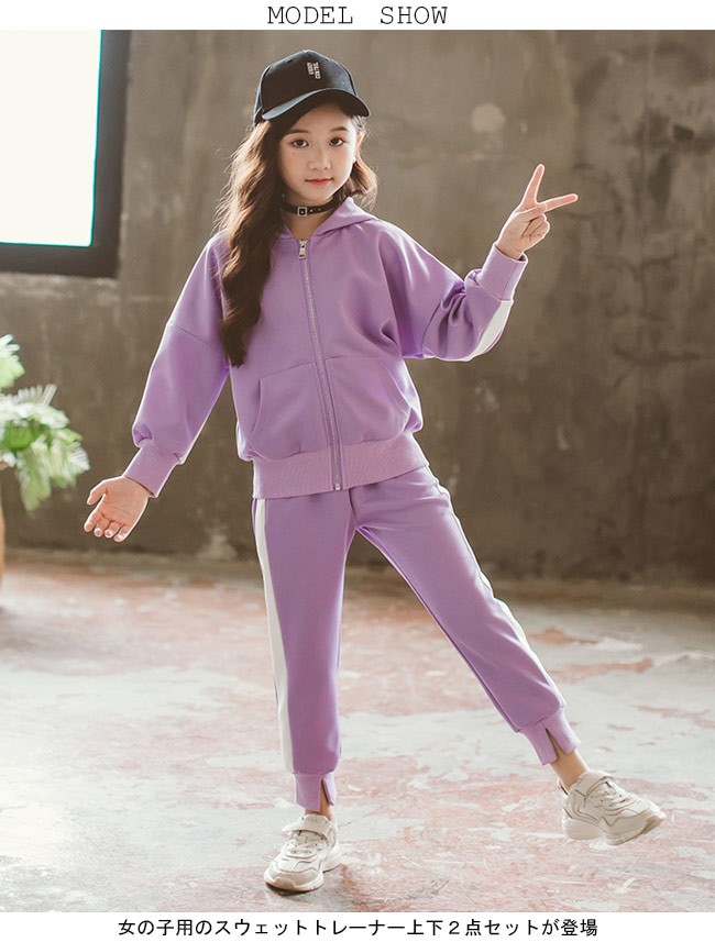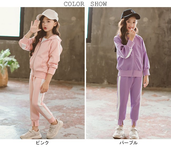スウェットトレーナー 女児 2点セット スウェットパーカー 女の子 スウェットパンツ スポーツウェア 子供服 セットアップ 部屋着女の子用のスウェットトレーナー上下2点セットが登場長袖ロングパンツの仕様で春秋の季節にピッタリ柔らかな素材にカジュアルなデザインでリラックスな着心地をもたらすファスナー・フード・大きめポケット付きで機能性抜群女の子らしいピンクとライトパープルの甘め色チョイスも嬉しいポイントカラー:ピンク パープル素材 ポリエステルサイズ(cm) 110 120 130 140 150 160110 トップス 着丈43 バスト88 ボトムス 総丈63 ウエスト48120 トップス 着丈46 バスト91 ボトムス 総丈68 ウエスト50130 トップス 着丈49 バスト94 ボトムス 総丈73 ウエスト52140 トップス 着丈52 バスト97 ボトムス 総丈78 ウエスト54150 トップス 着丈55 バスト100 ボトムス 総丈83 ウエスト56160 トップス 着丈58 バスト103 ボトムス 総丈88 ウエスト58ご注意:※サイズは平置きサイズです。素人採寸ですので、若干の誤差がございます、ご了承く
