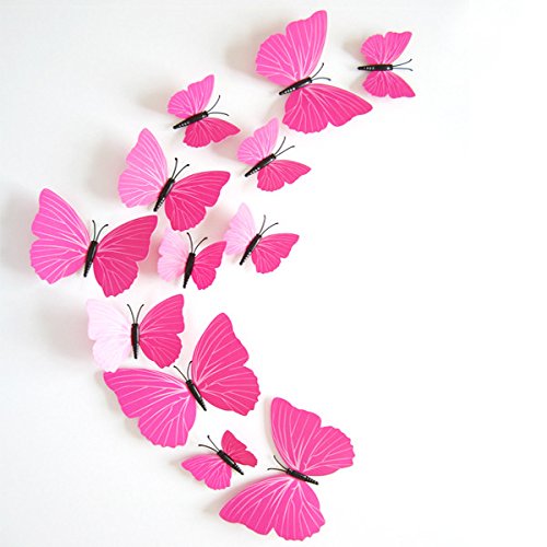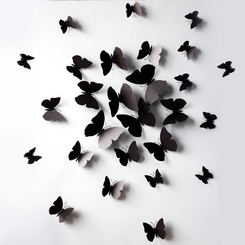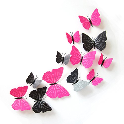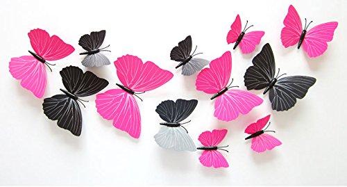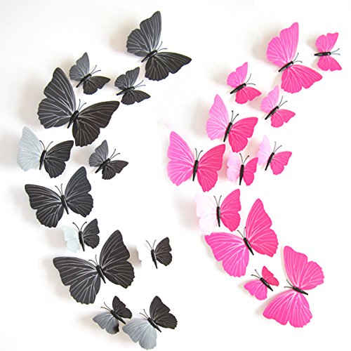 24 units 3D Butterfly Wall Stickers Decor Art Decorations (Pink&Black)