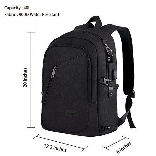| (Mancro)/Accessories/Luggage, Bags Travel/DIRECT FROM USA/Mancro Business Water Resistant Polyester Laptop Backpack with USB Charging Port and Lock Fits ... |