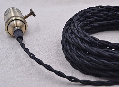 32.8ft Black Twisted 18/2 Rayon Covered Wire,HESSION Antique Industrial Electrical Cloth Cord,Vintage Style Lamp Cord strands UL listed
