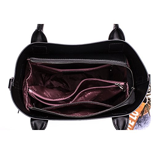 - Fluffy ball decorated, 2 external zipper pocket at two sides, 1 interior center divider zipper pocket, 1 interior zip pocket and 2 interior slip pockets