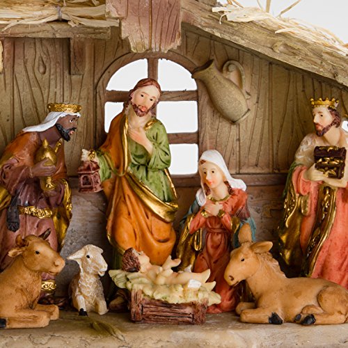 BRUBAKER Christmas Holiday Decoration - Real Life Nativity Set - Stable with 11 Resin Figurines (not re-arrangeable) - Nativity Scene (New Package) - Designed in Germany