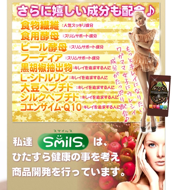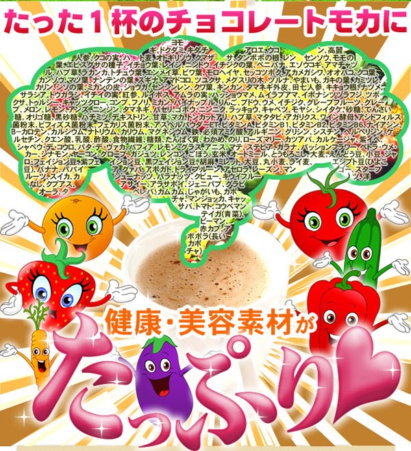 脱脂粉乳、水溶性食物繊維、コーヒー豆(生豆生産国名:ブラジル、他)、植物発酵エキスパウダー、グリーンコーヒー豆エキス、コエンザイムQ10、フーディアゴルドニー、L-シトルリン、黒胡椒抽出物、ビール酵母、大豆分離たんぱく、食用酵母、シルクペプチド、トレハロース、香料、微粒酸化ケイ素、甘味料(L-α-アスパルチル-L-フェニルアラニンメチルエステル、アセスルファムカリウム)、硫酸マグネシウム(原材料の一部に