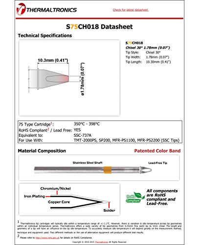 Thermaltronics S75CH018 Chisel 30deg 1.78mm (0.07") interchangeable for Metcal SSC-737A
