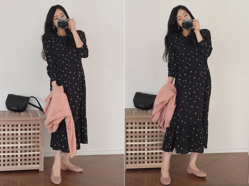 캐주얼하면서 페미닌한 무드가 느껴져 데일리원피스로 추천드려요♥