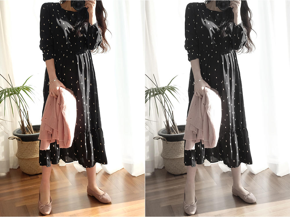 도트 쉬폰 롱 원피스