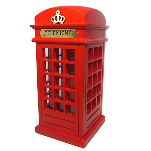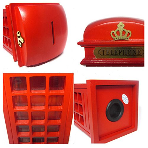 D-Foxes Retro Vintage Wooden Britain Telephone Booth Coin Banks London Street Booth Bank Spare Change Piggy Souvenir Gift Model Box Jar (Red)