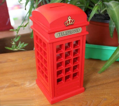 Beautiful and practical high-capacity piggy bank; Elegant British retro style, chic telephone booths modeling