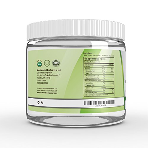 Ingredients: Organic Unrefined Cold Pressed Coconut Oil The benefits to OUR coconut oil don't just stop at skin and hair. Your Search For The Highest Quality Coconut Oil Is Over. Tired of trying to decipher the ingredients in your beauty products for your skin and hair? Find your beauty in one ingredient, our premium organic coconut oil. When that brown amazon box arrives at your door and you open rip it open to find YOUR Cosmetics Derigueur Coconut Oil, look at the size of the jar and the quality of the label. Remove the lid and take in the sweet modest smell of coconut oil. Dip your fingers into it and massage the solid oil into your hands and enjoy the moisture and smoothness of your skin. Do you want moisturized, healthy skin without all of the "unknown" ingredients? It can be used as a Skin Moisturizer, Shaving cream/Aftershave, Eye cream, Deodorant, and Massage Oil. It can even be used on problem skin areas such as dry cracked heels and elbows, and areas affected by psoriasis, eczema and bug bites. Do you want strong, resilient, healthy hair with amazing shine? Utilize coconut oil as a pre-shampoo treatment to minimize the hydral fatigue associated with low porosity hair. Apply as a sealant on top of your leave in conditioner or styler to seal moisture into the follicle and reduce frizz and fly aways by smoothing down the cuticle. Do you want to boost your energy levels with a completely natural supplement? Not only can this be eaten raw as a source of energy, it can be a tasty addition to fruit juices and smoothies, a replacement for traditional cooking oils and even a healthy addition to your morning coffee. Get the only coconut oil that you will ever need today! Leaves Natural Hair Silky Smooth ● Skin Moisturizer, Stretch Mark Prevention ● Natural Massage Oil f ●Nature's Ultimate Beauty ProductFeature