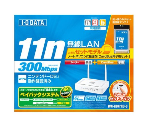 원본상품명: I-O DATA WPS?? IEEE802.11n Draft2.0準? 無線LANル?タ?&CardBus用子機セット WN-GDN/R3-S