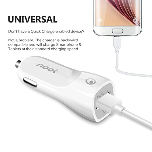 Samsung Galaxy S7 Car Charger 18W Qualcomm Quick Charge 2.0 USB Adapter with 3 feet Micro USB Charging Cable Cord for all QC 2.0 Compatible Devices