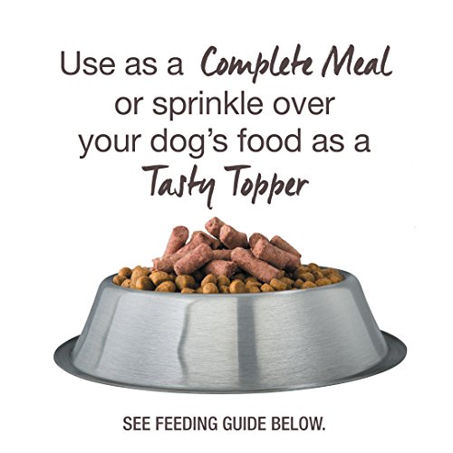 RAW FREEZE DRIED & EASY TO USE- Comes in a resealable pack. Simply mix the gently freeze-dried raw grass-fed lamb into your dog's dry kibble or wet canned dog food. Test the best serve size for your dog type and size. Store in your pantry after opening.