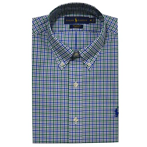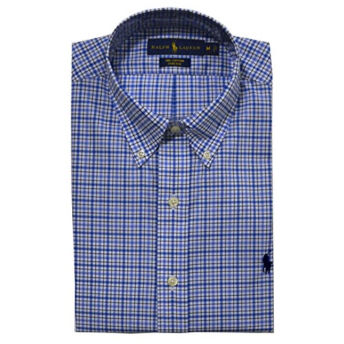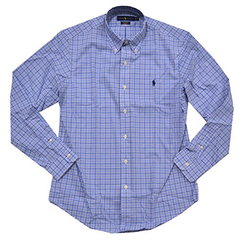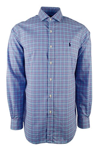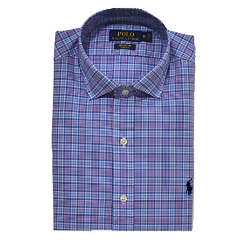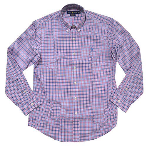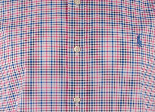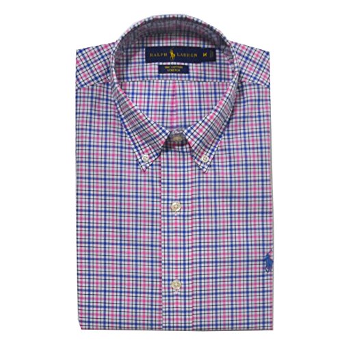 Polo Ralph Lauren Men's Cotton Poplin Stretch Plaid Sport Shirt (Medium, Blue/Pink)