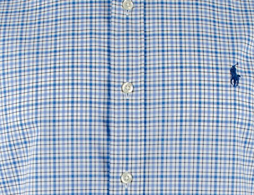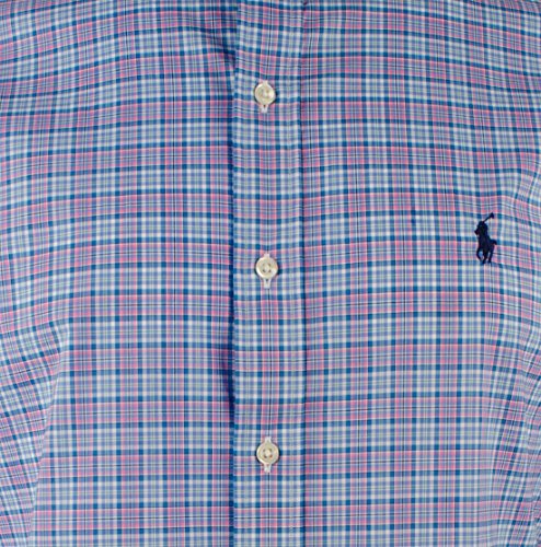 Polo Ralph Lauren Mens Cotton Stretch Buttondown (X-Large, Blue Pink)