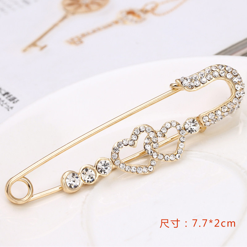 Korean Korean jewelry pearl diamond crystal brooch pin buckle double heart buckle shawl