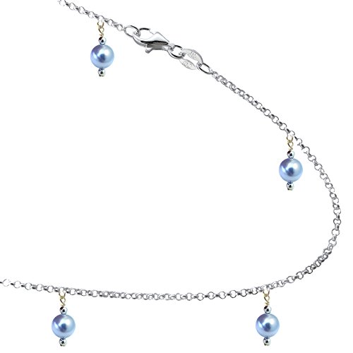 -. Title : Simulated Blue Colored Pearls with .925 Sterling Silver Link Anklet, Bracelet. 7,8,9,10,11,12,13 Inches