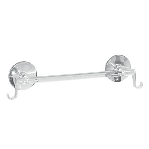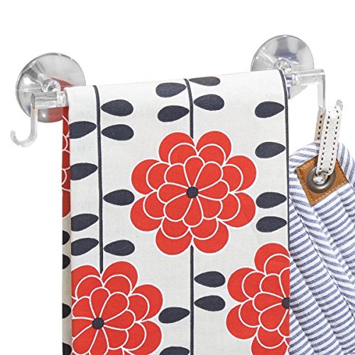 mDesign AFFIXX Peel-and-Stick Strong Self-Adhesive Towel Bar Holder with Hooks for Kitchen - Clear/Chrome