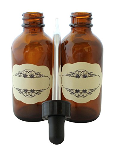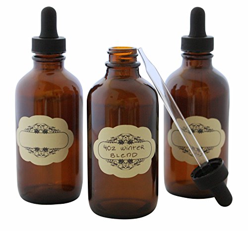 4 oz Capacity (120 ml) Glass Dropper Bottles - Multi-purpose Laboratory, Liquids, Essential Oils WITH Glass Pipette FREE bonus Decorative Labels - Pack of 3