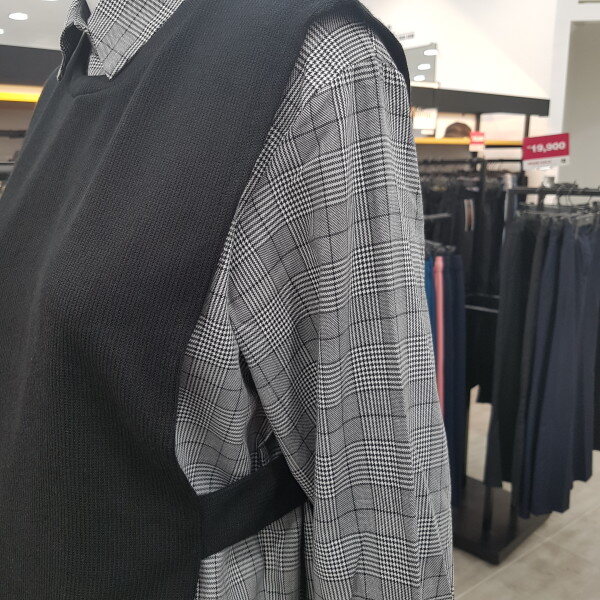 긴 원피스 기장가의 니트콤비 롱 셔츠입니다 프리사이즈의 넉넉한 루즈핏으로 편하게 입기좋으며 니트와 셔츠 각각 따로 다른옷과 매치하실수도 있어 실용성이 아주좋아요~~