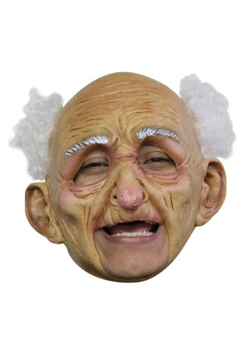-. Feature : Latex mask / Molded to look like an old man's face / Curly white hair on the sides / Open mouth area