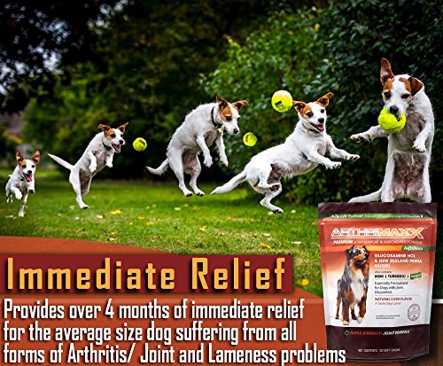 ArthriMAXX has established itself as a reliable Animal Nutrition Product company for 10 years and we are the most reputable company that provides a Chewable Supplement for Dogs who suffer from all forms of Joint and Lameness problems. The safest and most powerful Joint, Anti-Inflammatory and Antioxidant formula that exists in today’s market, ArthriMAXX has been developed with human grade ingredients right here in the U.S.A. for the past 10 years! ArthriMAXX is so efficient and powerful, it may be just enough to help get your dog off of NSAID’s. We use the safest and most powerful all natural anti-inflammatory agents available in the world including Turmeric, MSM, and Omega 3, 6, and 9 from Flax Seed Oil. ArthriMAXX is great because it can be used as a preventative to stop joint problems before they even occur, plus it helps to build muscle and endurance. Full 100% palatability guarantee! Buy from the Most Trusted Pet Company for Over 10 Years! You’ll notice the difference our products make in your pet’s life and you’ll be coming back for years to come! Shop around our storefront to see the other great products we offer!Feature