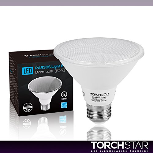 PAR30S LED Light Bulb, Dimmable Short Neck & Wet Location Available, 13W (75W Equiv.), High CRI90+, 5000K Daylight, 900Lm, E26 Base, Energy Star & UL Listed, 3 YEARS WARRANTY, Pack of 6