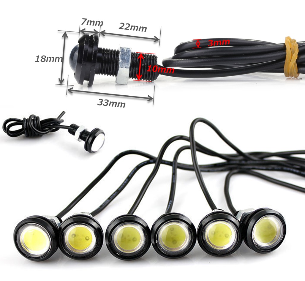 デイライト LED 12V 10個 18mm スポットライト 防水 ボルト 固定タイプ ブラック ホワイト 発光