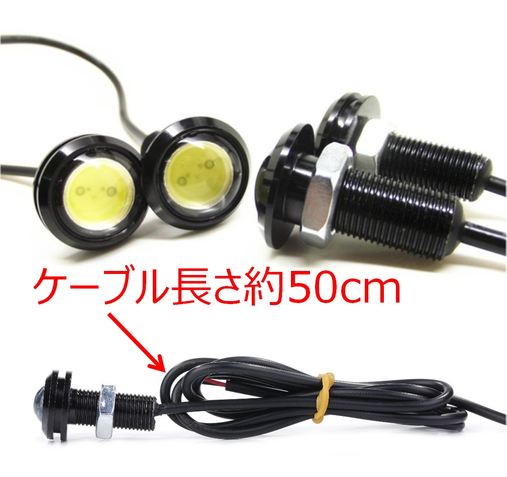 ・サイズ/全長:33 mm、ライト/外径:18 mm、ネジ/長さ: 22 mm、直径:10 mm、配線の長さ:50cm 素材:酸化アルミニウム 重量:106g カラー:白 配線:赤/+、黒/-