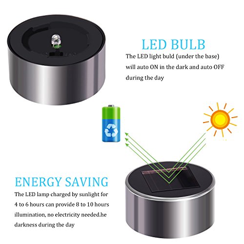 ✔100% Solar Powered-- Save money on electricity when you use the sun. The LED lamp charged by sunlight for 4 to 6 hours can provide 8 to 10 hours illumination, realizing energy saving.16 pack LED solar path lights cast enough light to brighten your path, enhancing both visibility and safety. Lumens: 1.2 lumens.