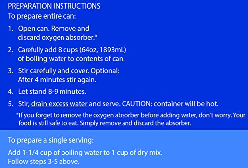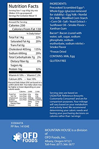 - Feature : Scrambled eggs with real and flavorful bacon. / Quick prep! Just add water to the can and you're good to go in less than 10 minutes, with no cleanup! / Sixteen 2/3-Cup Servings / Allergens: Egg, Milk / 25+ year taste guarantee