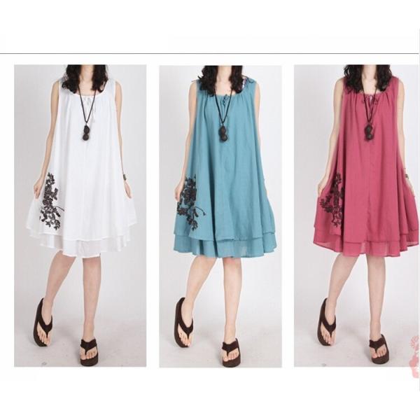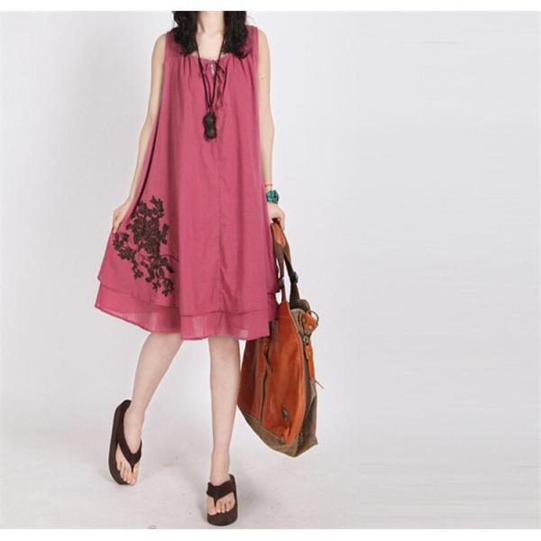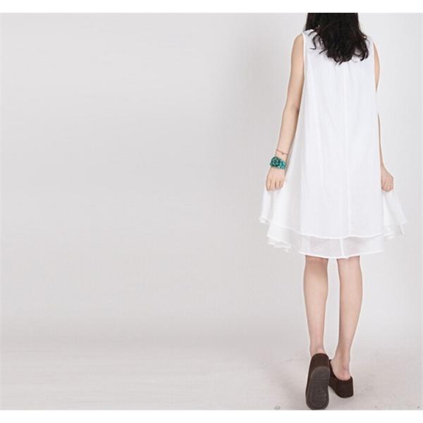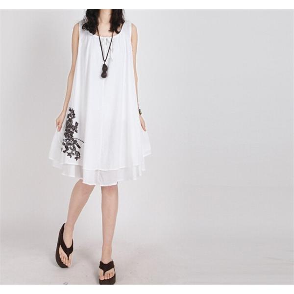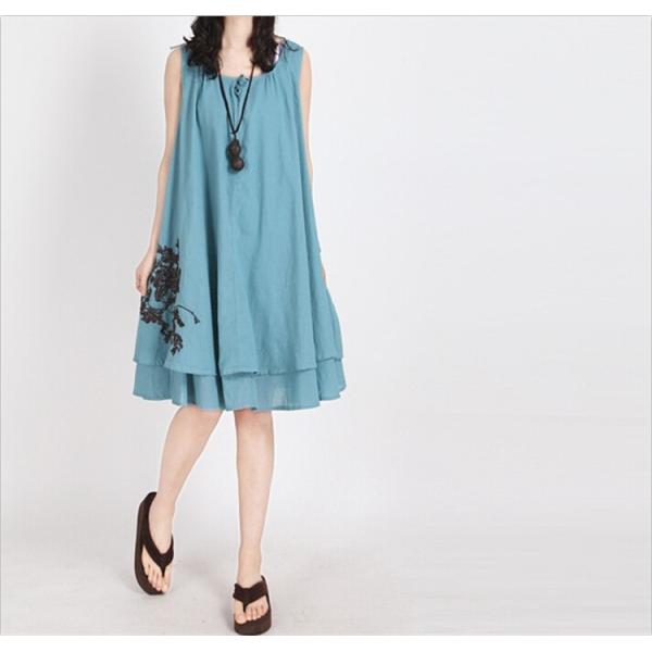 刺繍デザインがワンポイントになったノースリーブワンピース。