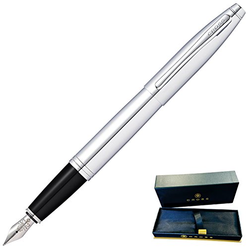 -. Feature : Free engraving, up to 25 characters, engraving shows up a brass color. Choose block or script font for engraving on the pen. / Removable cap, authentic Cross pen brand, fountain pen, Calais Chrome fountain pen with medium nib , and 1 starter ink cartridge. / Comes in a Cross pen case. / Personalized custom engraved gift fountain pen, with Cross Pen Manufacturers Warranty. / Makes a great gift pen for award, fathers days, graduation, or birthday.