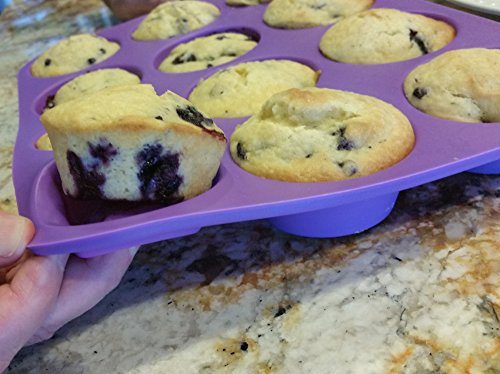 -. Feature : MUFFINS AND CUPCAKES DO NOT STICK TO THE PAN. They also pop out easily with perfect shape due to the flexibility of the pan. The silicone cools quickly when removed from the oven so the pan does not continue to bake like a metal pan will. Muffins and other baked items brown perfectly and evenly. Also, no more paper liners are necessary for your cupcakes! You will enjoy healthy baking with this silicone muffin pan from Happy Cook, and it will improve your baking results. / CLEAN UP IS A SNAP! Say goodbye to soaking and the messy look of baked on grime and rust. No more scrubbing and working to get the 12 cups clean after things stick and cling to your metal pan. Rinse and wash by hand or toss in the dishwasher. Your silicone pan will not become discolored with baked on sprays and batter that over time make your metal pans unsightly. There is no Teflon surface that will scratch and have to be replaced over and over again. / YOU WILL LOVE BAKING WITH THESE pans!! They are a great gift idea for family and friends. The baking ideas are limitless beyond muffins and cupcakes; such as quiches, bacon and eggs, mini upside down cakes, cookie dough, brownie dough, frozen treats ... and many more. The colorful silicone also adds a splash of color to your kitchen and bake ware. Satisfaction guaranteed, or your money back. Order your silicone muffin pan from Happy Cook today! / SILICONE PANS OFFER MANY BENEFITS. Silicone pans are not rigid like metal pans. You should place them on a cookie sheet when filling and putting them in the oven, refrigerator or freezer. The flexibility of the silicone pan is what makes them such a pleasure to cook with. Placing them on a cookie sheet is the best way to add stability when lifting the pan. Once you discover the benefits of baking with silicone pans, you will never buy metal pans again! Silicone pans have been used commercially for years and are now being sought after by cooks at home. / THESE ARE MADE FROM PREMIUM 100% FOOD GRADE SILICONE, BPA free, FDA certified, with no plastic fillers and will last for years of baking enjoyment. These pans make the standard size muffins/cupcakes and are the same size as your typical metal muffin pan. They are designed for cooking in up to 450 degrees F and also can be used for frozen treats down to -40 degrees. Silicone pans are also microwave friendly. They are easy to store, can be folded and even squashed without any harm. They always pop back into shape because they are molded silicone!